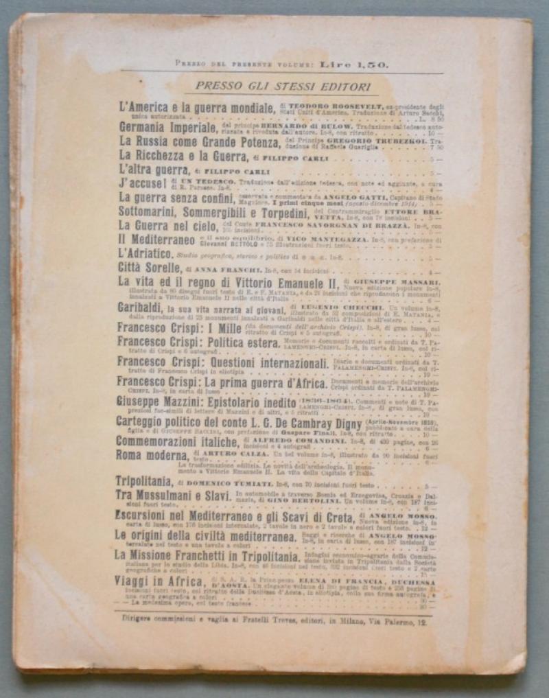 PRIMA DUERRA. IL GERMANESIMO SENZA MASCHERA di Ariel (F.Steno). Milano, Treves, 1917. Formato cm 19x24,5, pagine 83. Qualche piccola usura. (Rif.D4262)