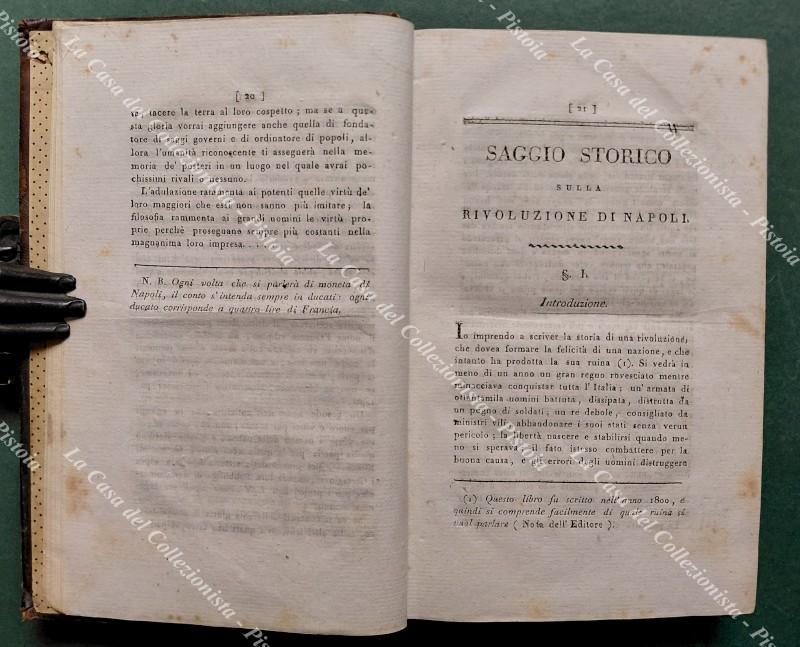 SAGGIO STORICO SULLA RIVOLUZIONE DI NAPOLI. Seconda edizione con aggiunte dell'autore. Milano, Tip di Francesco Sonzogno, 1806.