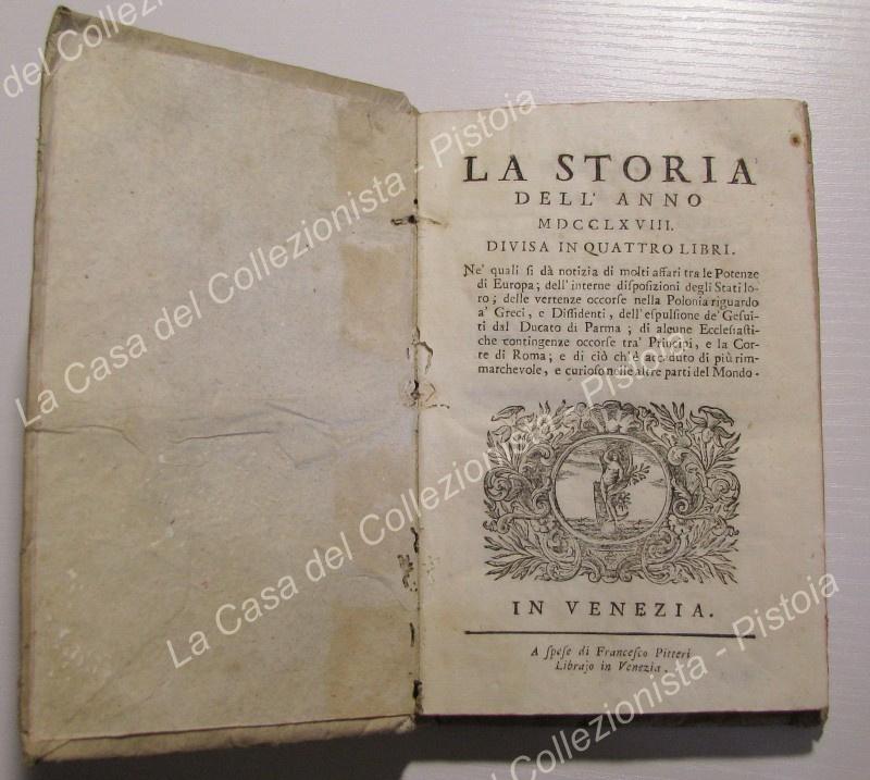 Storia -ediz.'700. LA STORIA DELL'ANNO 1768. Avvenimenti in Italia e nel mondo. Amsterdam-Venezia, Francesco Pitteri, 1767
