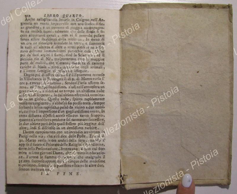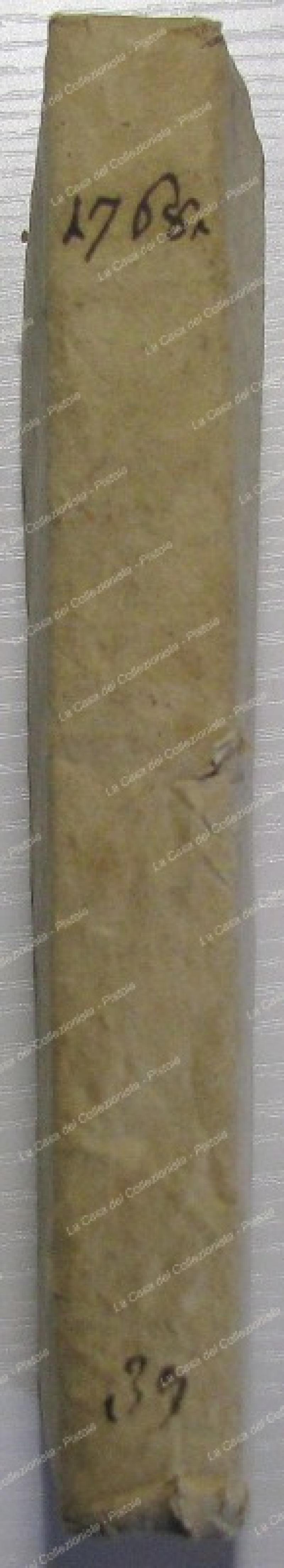 (Storia - ediz. '700). LA STORIA DELL'ANNO 1768, divisa in quattro libri. Xilografia al frontespizio.Testatine e capolettera incisi. Volume in 16° (cm 16x11). Pagine 312. Cartonatura coeva, tagli spruzzati. Divergenze della corte di Roma col Regno delle Due Sicilie, Ducato di Parma e Ducato di Modena e delle cose principali accadute nel mondo. Segnetto di tarlo alle prime 8 carte in corrispondenza della loro attaccatura nel libro. LA STORIA DELL'ANNO opera ricca di notizie, edita da Francesco Pitteri ad Amsterdam ed a Venezia a partire dal 1767 contenente le cronache dei principali avvenimenti accaduti in Italia e nel mondo. (Rif.B140)