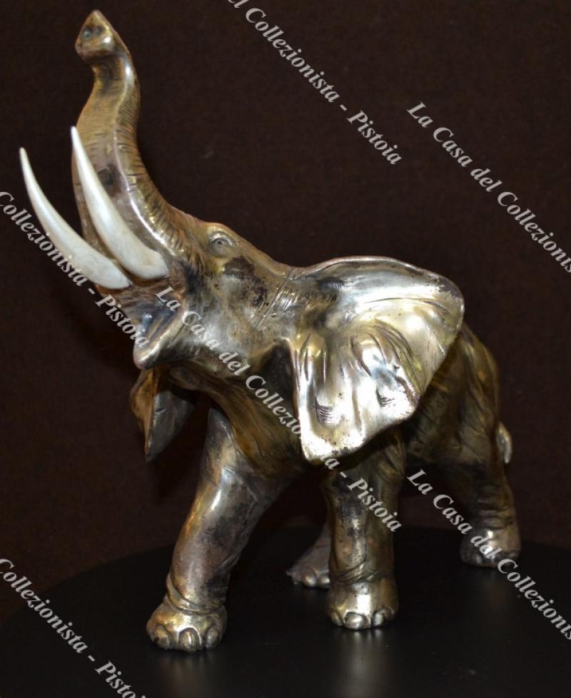 Elefante in terracotta argentata databile attorno al 1930. Ottima fattura e buono stato di conservazione con normali ossidazioni dell’argento dovute al tempo. Misura circa cm 33x27x18. (Rif.F7735)
