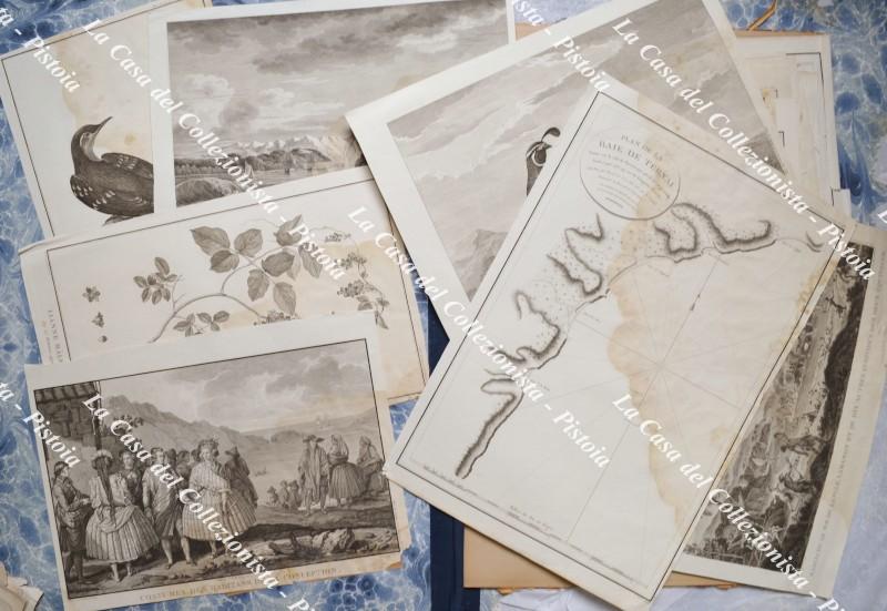 LOTTO DI CIRCA 110 INCISIONI (acquaforti, acciai, litografie, xilografie) provenienti da opere del '700/'800 (atlanti e libri di viaggio per lo più). 32 sono carte geografiche, 78 sono vedute e soggetti vari. Misure varie (molte quelle grandi). Alcuni pezzi hanno aloni e andrebbero lavati. Vengono proposte nello stato in cui sono state reperite. (Rif.F7372-77)
