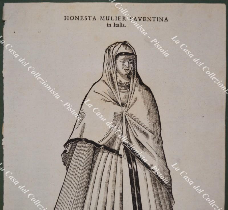 Anno 1577. HONESTA MULIER FAVENTINA in Italia (Donna di Faenza). Rara xilografia dall'opera di Hans Weigel.