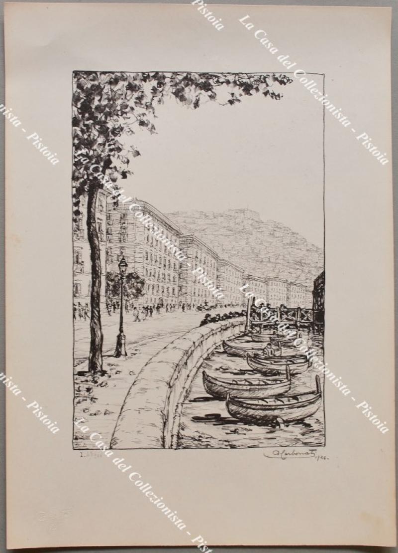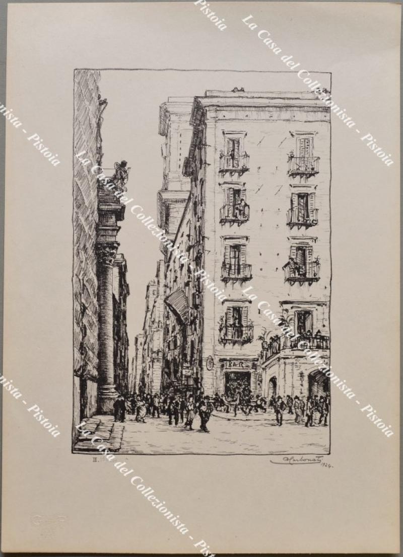 CAMPANIA - NAPOLI. Antonio Carbonati (Mantova 1893 - Roma 1956). Sei vedute realizzate in litografia impresse su carta color paglierino di buona grammatura. Misurano mm 198x280 (ai margini mm 300x415); sono datate 1924, numerate e firmate a lapis. 1) Via Toledo. 2) Strada S. Gregorio Armeno. 3) Mergellina. 4) Dal Ponte della Sanità. 5) Porta Capuana. 6) Piazza del Gesù e Via Croce. Insieme in ottima conservazione. (Rif.F6380) FOTO € 100.00