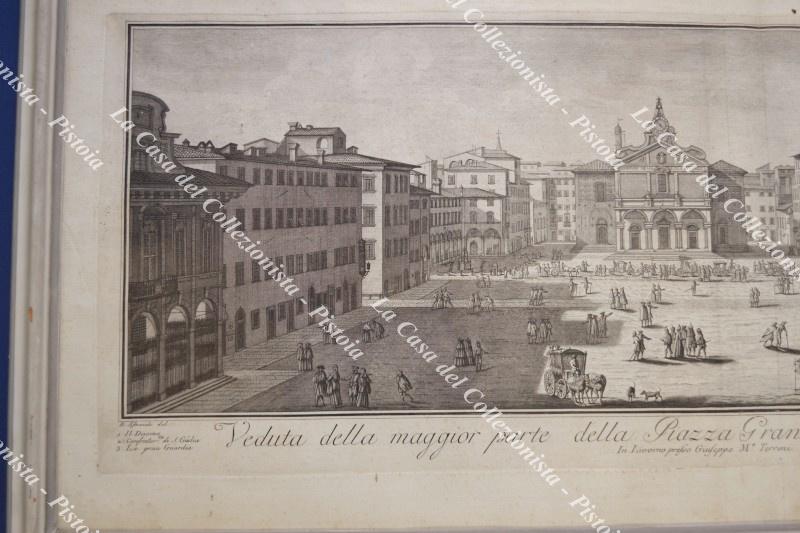 TOSCANA - LIVORNO. VEDUTA DELLA MAGGIOR PARTE DELLA PIAZZA GRANDE DI LIVORNO PRESA DAI TRE PALAZZI. Incisione su rame di mm 735x273 (ai margini mm 775x335). Tratta dalla serie di 18 incisioni “Collezione delle più belle vedute della Città porto di Livorno ....”, raro album stampato nel 1814 in Livorno. Agli estremi del margine inferiore Aliprandi del. Fambrini sculp.. Buona conservazione.(Rif.F6580-288/76)