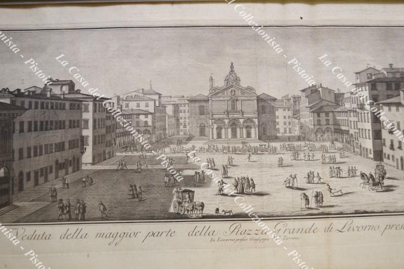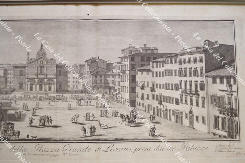 TOSCANA - LIVORNO. VEDUTA DELLA MAGGIOR PARTE DELLA PIAZZA GRANDE DI LIVORNO PRESA DAI TRE PALAZZI. Tratta dalla serie di 18 incisioni “Collezione delle più belle vedute della Cit tà porto di Livorno ....”, raro album stampato nel 1814 in Livorno.