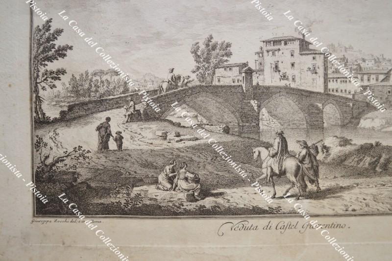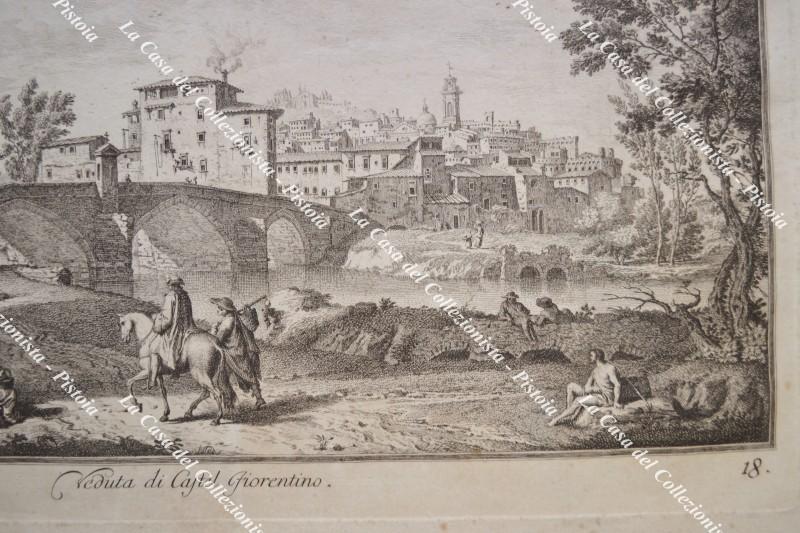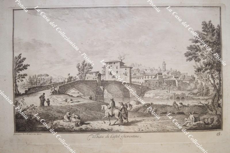 TOSCANA. VEDUTA DI CASTEL FIORENTINO. Incisione su rame di mm 480x305 (ai margini mm 612x388) disegnata e incisa da Giuseppe Zocchi. Circa 1744. Nitida impressione su carta forte. Buona conservazione, eccetto un aloncino all’angolo bianco superiore e minime imperfezioni sui margini bianchi e lieve piega centrale. (Rif.F6577)