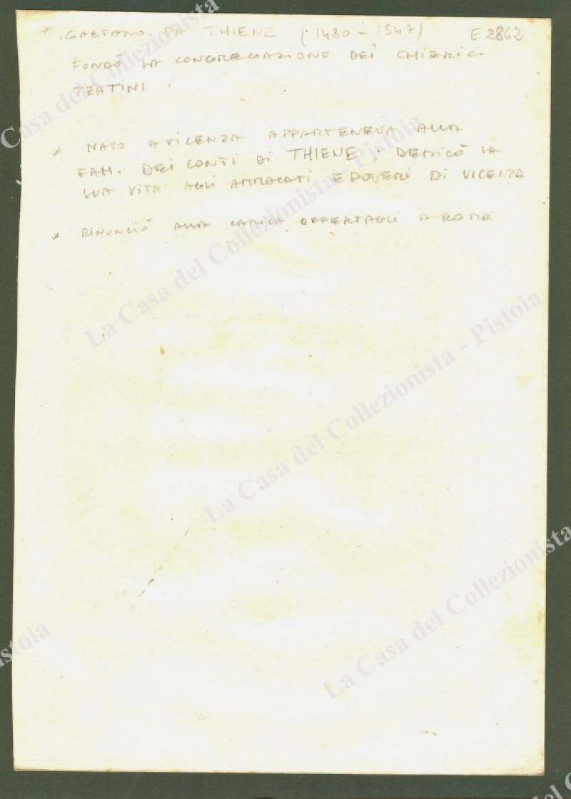 S.GAETANO DA TIENE, Fondatore della Congregazione dei Chierici Teatini, Patrono dei disoccupati. Bella tavola assai fine e curata, incisa all’acquatinta in color seppia da Cleter su disegno di F.Bigioli è tratta da "Il perfetto leggendario ovvero vite de’ Santi per ciascun giorno dell’anno”, opera edita in Roma attorno al 1840. Misura mm 185x265 ai margini e impressa su carta grave. (Rif.E2862)