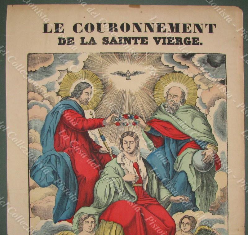 STAMPA POPOLARE. LE COURONNEMENT DE LA SAINTE VIERGE. Grande xilo acquarellata all’epoca. Pellerin, Epinal, circa 1870