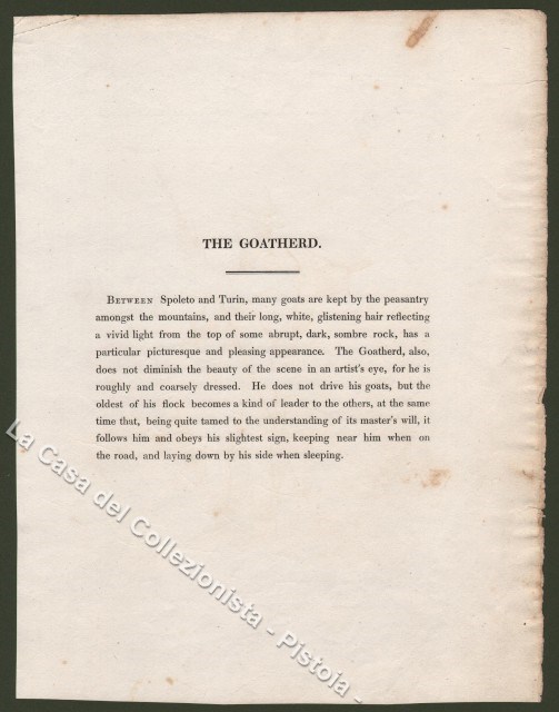 ITALIA - costume. "Italian Goatherd", un capraio e le sue bestie. Fine coloritura coeva. Mm 235x300. Londra, Baldwin, 1820. Buona conservazione. (Rif.C1009-363/57)