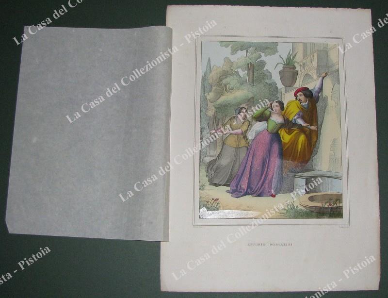 7 TAVOLE di cm 26x35 in litografia, prima metà 1800, a carattere storico, mostrano: ANTONIO FOSCARINI - LA BATTAGLIA DELLA MELORIA - FILIPPO STROZZI - LUISA STROZZI - DANTE ALIGHIERI - CORRADINO ULTIMO DI STIRPE SVEVA - GIULIO CESARE VACHERO. Colorate all'epoca e lumeggiate con il chiaro d'uovo. Ottima conservazione. (Rif.E1786)