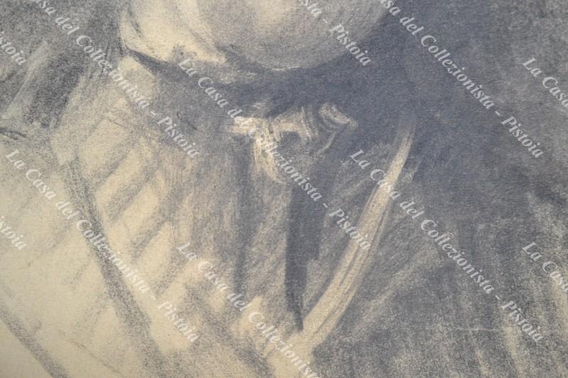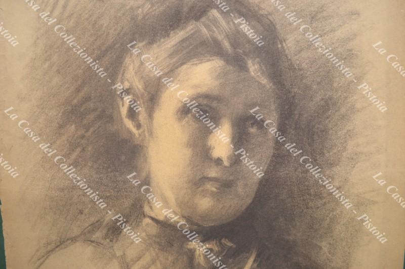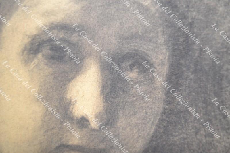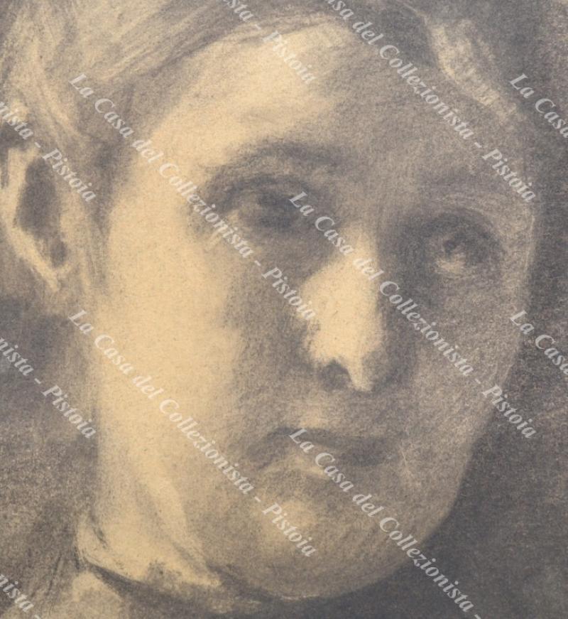 RITRATTO DI GIOVANE DONNA. Disegno a lapis di grandi dimensioni (cm 46x65). Databile attorno al 1880. Non firmato, ma di ottima mano. Uno strappetto al margine superiore e lievi imperfezioni lungp i bordi. (Rif.F2197)