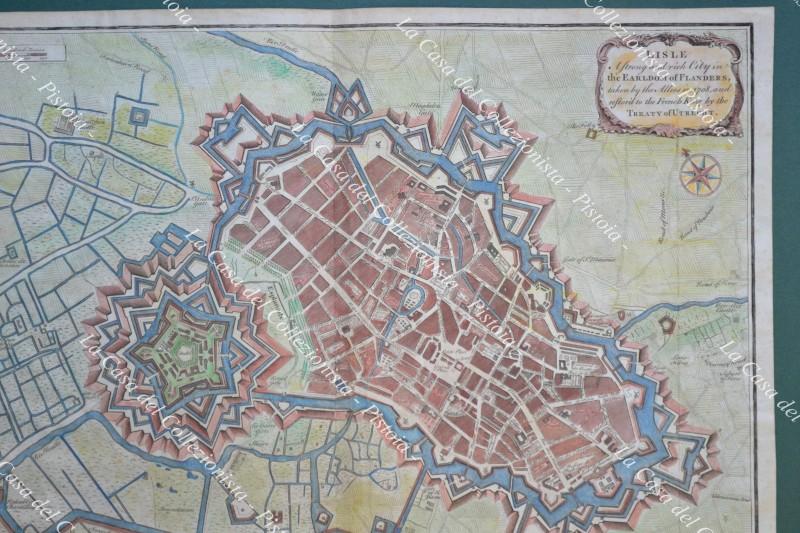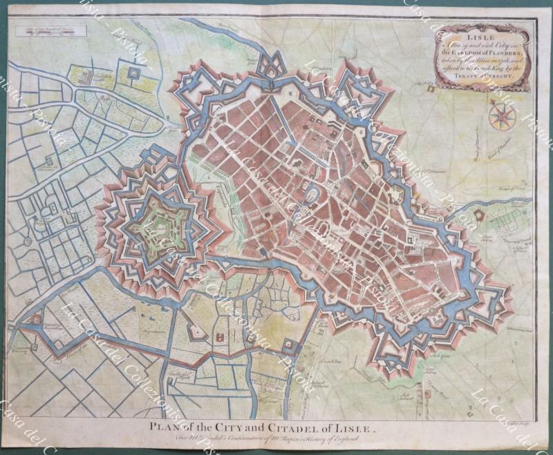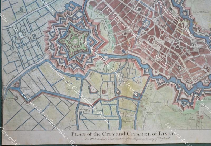FRANCIA - FRANCE. Plan of the city and citadel of Lisle. Acquaforte tratta dall'opera di Nicolsa Tindal, anno 1746. Mm 480x390, colorata all'epoca. Buona conservazione. (Rif.D8298)