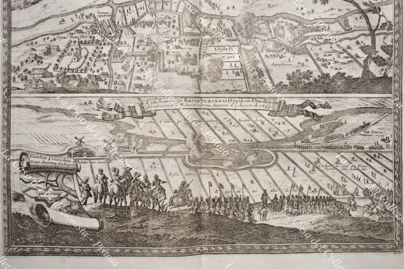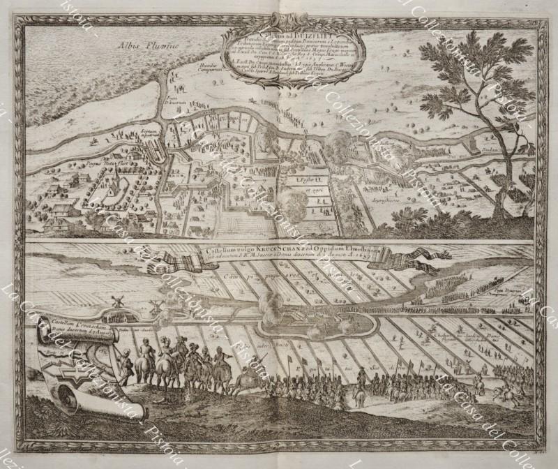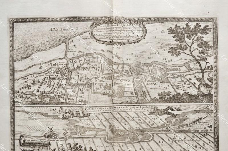 Germania Deutschland Butzfleth. CASTELLUM AD BUTZFLIET. Bella incisione all'acquaforte tratta dall'opera di Samuelis Liberi Baronis de Pufendorf "De Rebus a Carolo Gustavo Sveciae Rege Gestis", stampata a Norimberga nell'anno 1696. Mm 330x263 (ai margini mm 440x350). Ottima conservazione. (Rif.D6138)