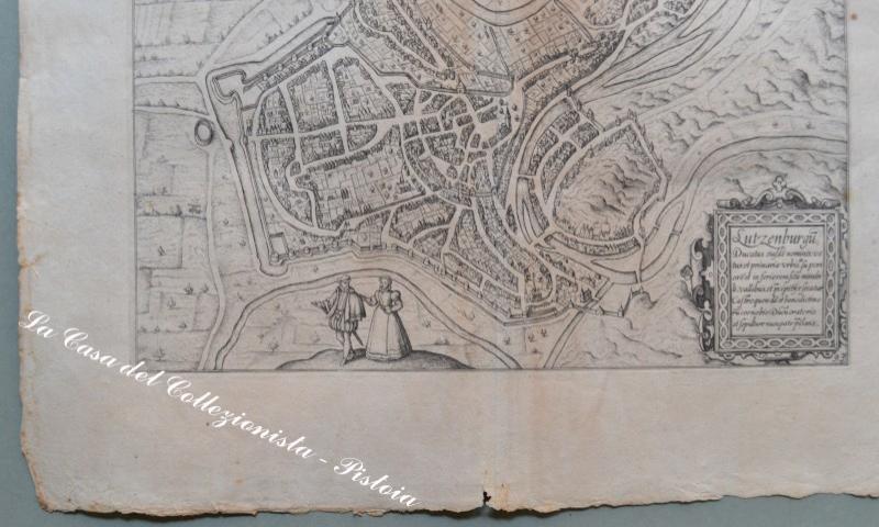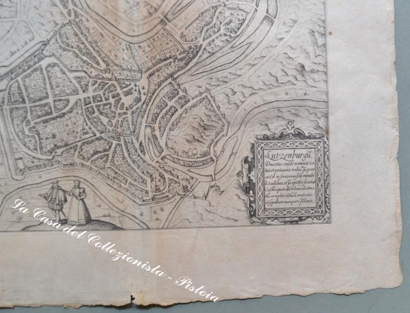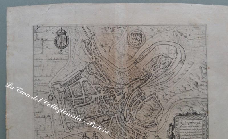 LUSSEMBURGO, LUXEMBOUR. LUTZEN BURGU DUCATUS EIUSDE NOMINIS. Veduta a volo d'uccello della città. Incisione