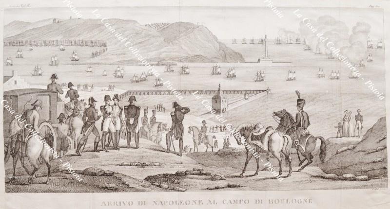 NAPOLEONE. Francia. "ARRIVO DI NAPOLEONE AL CAMPO DI BOULOGNE". Acquaforte dall'opera di De Norvins, circa 1840