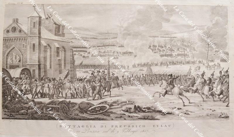 NAPOLEONE. Prussia."BATTAGLIA DI PREUSSICH - EYLAU". Acquaforte tratta dall'opera di De Norvins, circa 1840