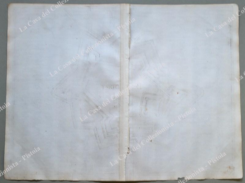 Pianta topografica della città di "Brievoort". Incisione realizzata con la tecnica dell'acquaforte tratta da "Teatro del Belgio o sia descritione delle diecisette provincie del medesimo; Con le Piante delle Città, e Fortezze Principali; da chi al presente possesse; come, in qual modo, & in qual tempo acquistate. Aggiontovi un Succinto racconto di quanto è occorso dalla mossa d'armi del Re Christianissimo contro gli Stati Generali delle Provincie Unite fin' al fine del 1672. Descritta dal Conte Galeazzo Gualdo Priorato", opera stampata in Francoforte nel 1683. Misura cm 41,3x31,6 (ai margini cm 44,7x33,6). Piccola mancanza di carta al margine bianco inferiore. Alcuni lievi ingiallimenti. (Rif.D7020)