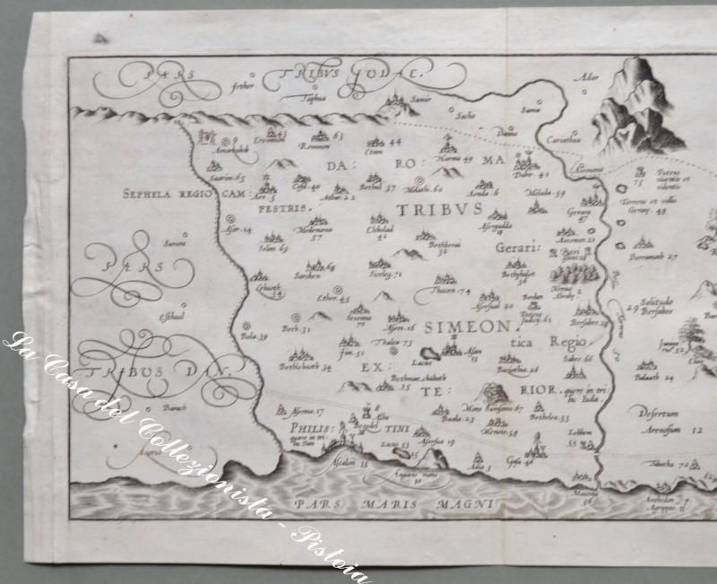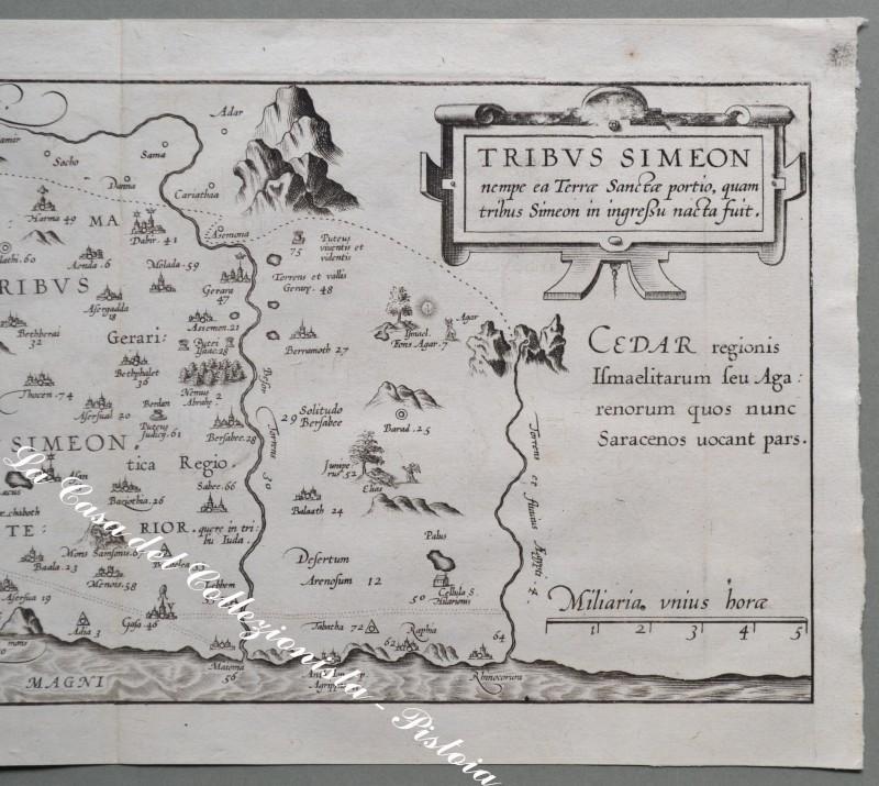 PALESTINA. "TRIBUS SIMEON…. In Terrae Sanctae …". Adricomius, circa 1600. Rame di mm 453x225. Bella carta con cartiglio, rara. (Rif.D1811 - 213/65)