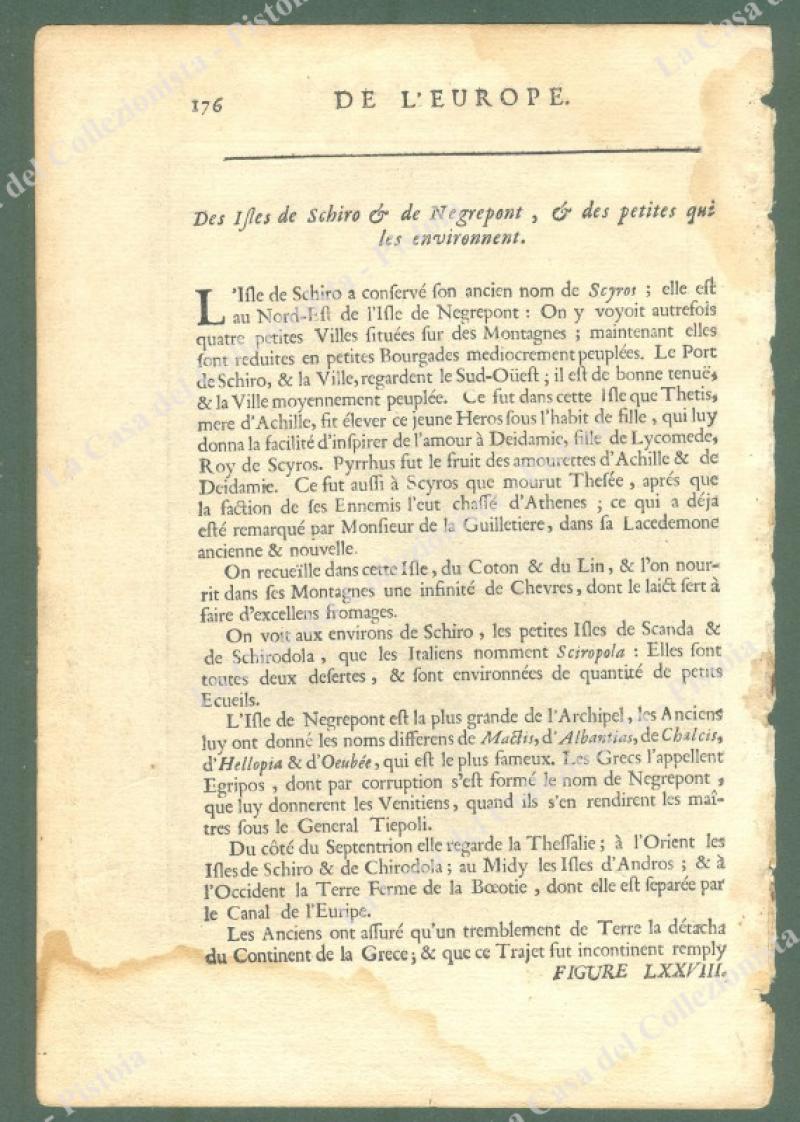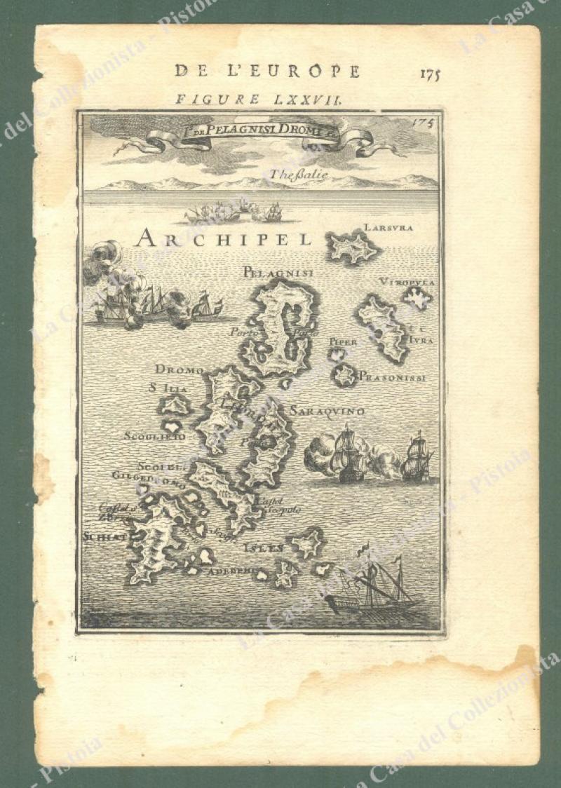 PELAGNISI. DROMO, mare Egeo, Grecia. "Is. de Pelagnisi Dromi". Mallet, 1683, mm 102x147 (ai margini 128x190). Due aloni laterali. (Rif.E1966)