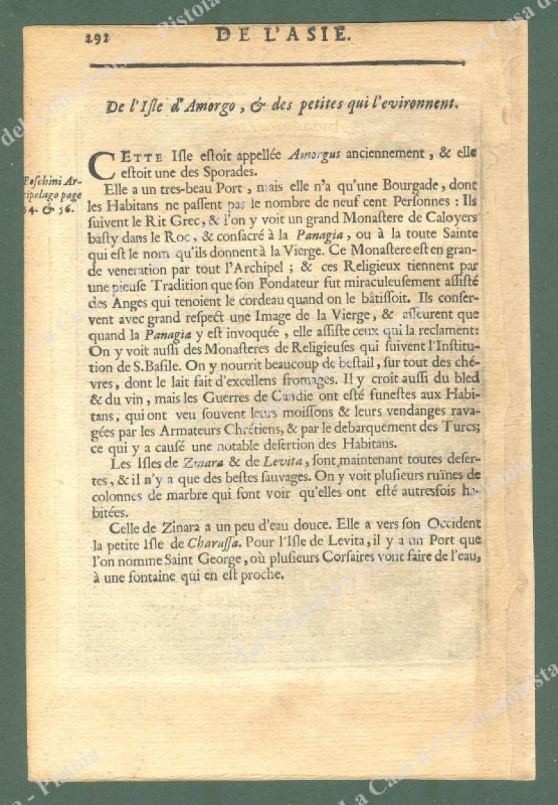 STAMPALIA, mare Egeo, Grecia. "Isle de Stampalia". Mallet, 1683