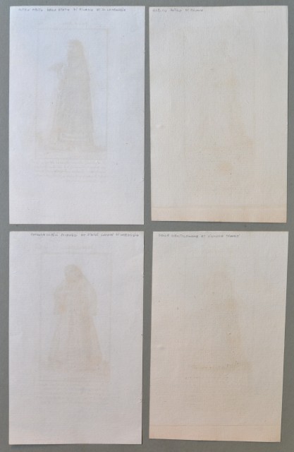 LOMBARDIA - MILANO. Quattro tavole, all'acquaforte, con costumi femminili di Milano riproducenti quelle contenuti nell'opera di Vecelio. Provengono da opera spagnola settecentesca.