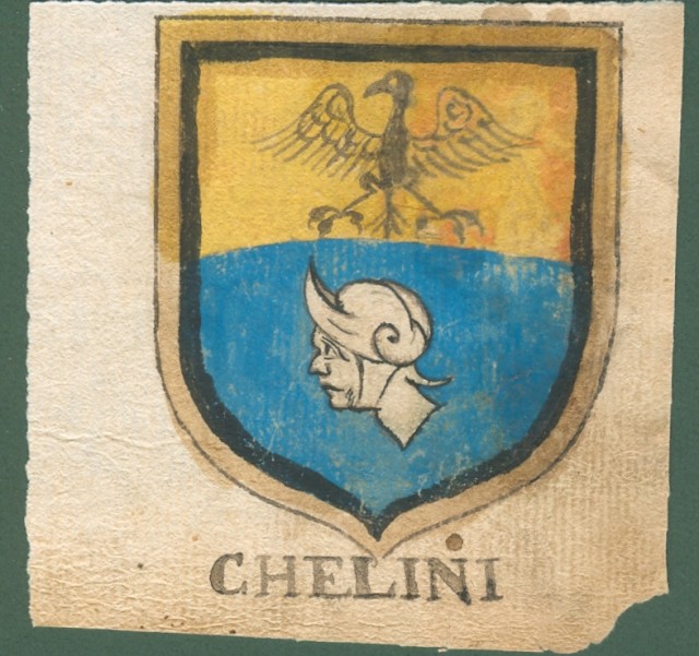 ARALDICA. DEL CIARPA-CHELINI. Toscana '600. Stemmi di famiglie nobili toscane realizzati a china e tempera, databili alla seconda metà del 1600