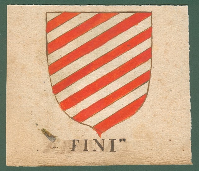 ARALDICA. DEL FALLERA-FINI. Toscana '600. Stemmi di famiglie nobili toscane realizzati a china e tempera, databili alla seconda metà del 1600. Parte di foglio contenente (uno al recto ed uno al verso) i due stemmi ciascuno di mm 60x80 più margini. Buona conservazione. (Rif.C5130)