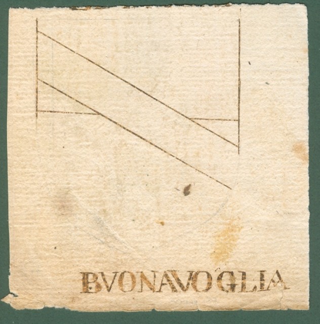 ARALDICA. BALDI-BUONOVAGLIA. Toscana '600. Stemmi di famiglie nobili toscane realizzati a china e tempera, databili alla seconda metà del 1600. Parte di foglio contenente (uno al recto ed uno al verso) i due stemmi ciascuno di mm 60x80 più margini. Uno stemma non ha coloritura. (Rif.C5128)