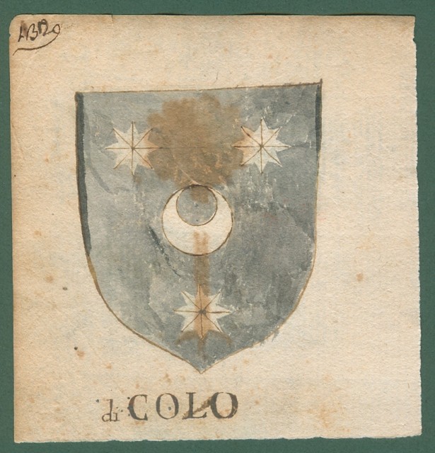 ARALDICA. CIARDI-DI COLO. Toscana '600. Stemmi di famiglie nobili toscane realizzati a china e tempera, databili alla seconda metà del 1600. Parte di foglio contenente (uno al recto ed uno al verso) i due stemmi ciascuno di mm 60x80 più margini. Buona conservazione. (Rif.C5114)