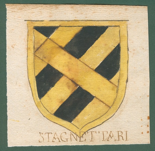 ARALDICA. DI SIENA-STAGNETTARI. Toscana '600. Stemmi di famiglie nobili toscane realizzati a china e tempera, databili alla seconda metà del 1600. Parte di foglio contenente (uno al recto ed uno al verso) i due stemmi ciascuno di mm 60x80 più margini. Buona conservazione. (Rif.C5110)