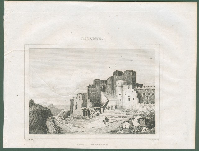 CALABRIA. Rocca Imperiale. Veduta panoramica. Mm 115 x 80 più margini. Da Italie Pittoresque anno 1836. Ottima conservazione.(Rif.C4757)