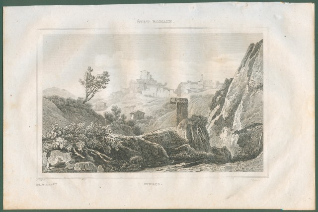 SUBIACO (Roma). Veduta generale. Da Italie Pittoresque anno 1836.