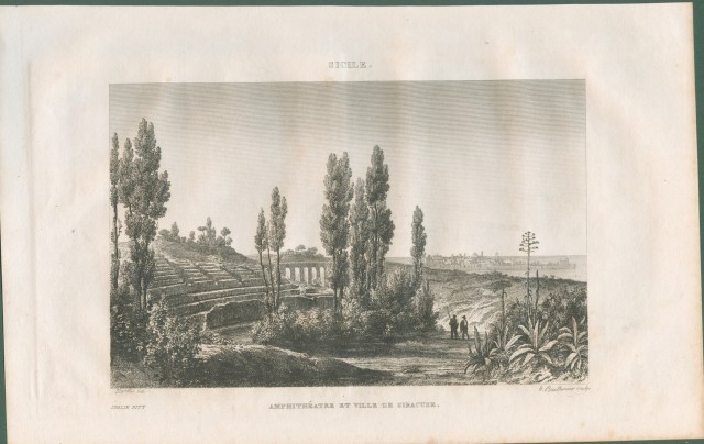 SIRACUSA. Sicilia. Anfiteatro e visita della città . Da Italie Pittoresque anno 1836