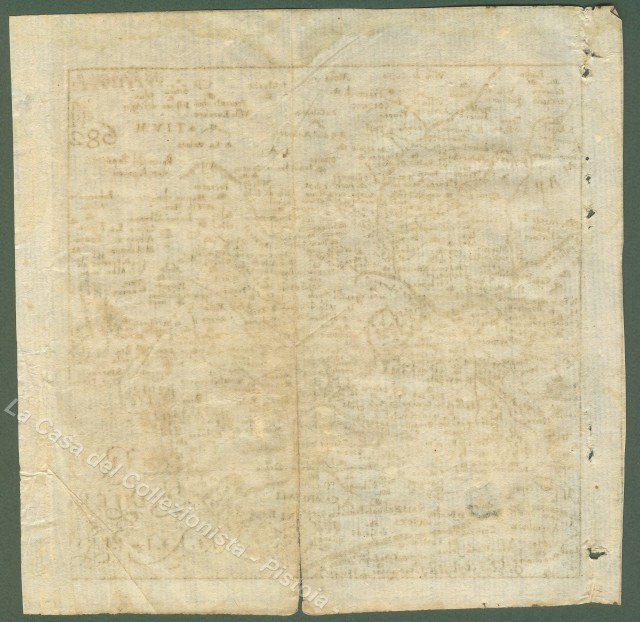 ROMA e dintorni. Cartina dei dintorni di Roma. Rara incisione fuori testo, realizzata con la tecnica dell'acquaforte, tratta da "Itinerario, overo nova descrittione de' viaggi principali d'Italia" di Francesco Scoto, opera edita in Venezia nel 1670 da Gio. Pietro Brigonci. Misura mm 118x118 (ai margini 138x138). Piccola rottura ricomposta alla base della piegatura centrale. (Rif.C1169-179/57)