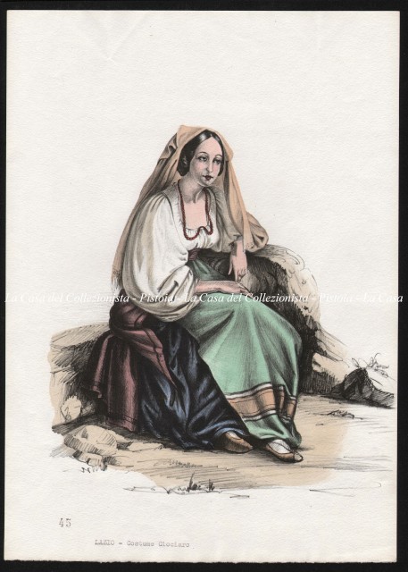 LAZIO. "Costume ciociaro", fanciulla in tipico costume. Tavola in litografia, colorata a mano, di mm 250x350, Gorlich 1955. Ottima conservazione. (Rif.B7219-383/54)