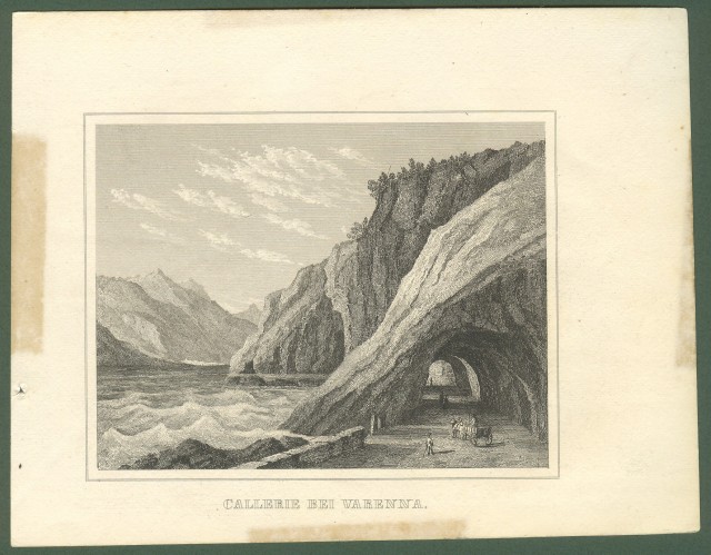 LAGO DI COMO. "Callerie bei Varenna", panoramica vista col lago. Edita a Stoccarda da Johann Scheible tra il 1840 e il 1841. Mm 98x76 più marg.. Aloni su tre margini bianchi provocati da nastro adesivo. (Rif.B6037-442/59)