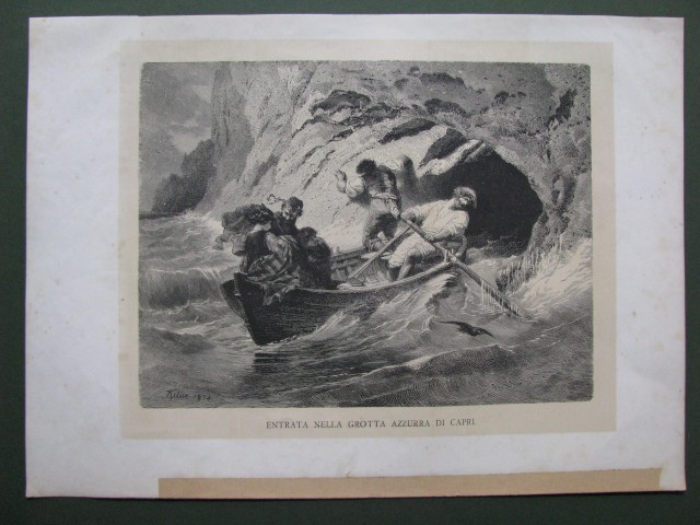 ENTRATA NELLA GROTTA AZZURRA DI CAPRI. Xilografia fuori testo di mm 247x187 più margini tratta da "Dalle Alpi all'Etna". Circa anno 1880. (Rif.B4514)