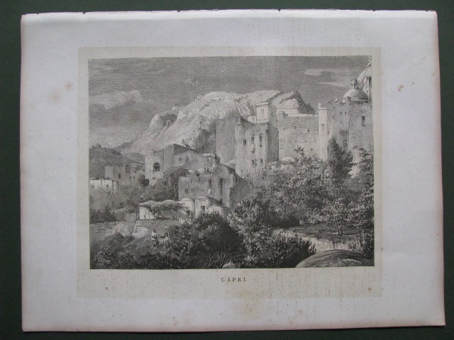 CAPRI, veduta del borgo. Mm 247x185 (ai marg. 270x360). Xilografia di mm 188x250 (ai marg. 270x360). Xilografia fuori testo tratta da "Dalle Alpi all'Etna", circa 1880. (Rif.B1279-533/49)