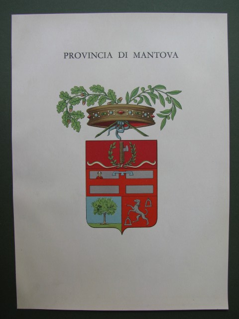 STEMMA DELLA CITTA' DI MANTOVA. Splendida litografia a colori realizzata su carta patinata. Tavola fuori testo di cm 20,5x27,5. Databile attorno al 1930. Conservazione perfetta.