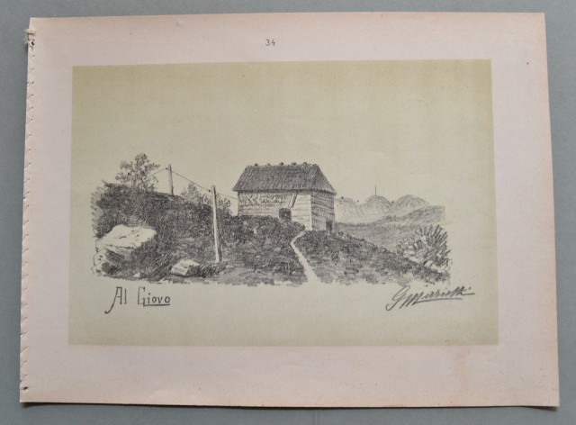 Incisione realizzata attorno al 1890 in litografia e stampata in nero su fondo seppia. Misura mm 240x160 più margini bianchi ed è contenuta in tavola fuori testo di mm 290x220. (Rif.A5959-473/44)