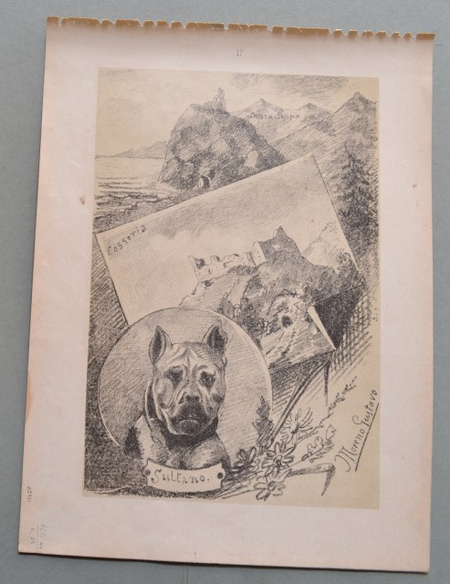 Un tratto di costa e i resti del forte. Incisione realizzata attorno al 1890 in litografia e stampata in nero su fondo seppia. Misura mm 240x160 più margini bianchi ed è contenuta in tavola fuori testo di mm 290x220. (Rif.A5951-465/44)