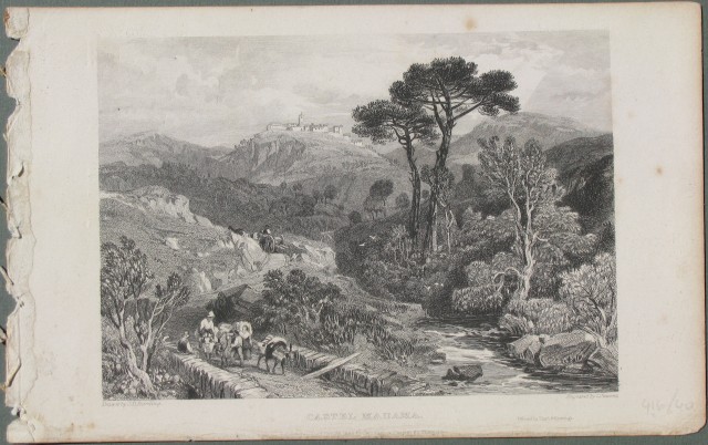 ROMA dintorni. Castel Madama. Deliziosa veduta panoramica disegnata da Harding datata 1832, mm 140x98 più marg.. (Rif.A1920-L40)