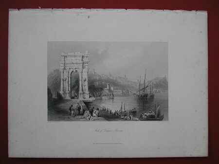 Arch of Trajan, Ancona. Splendida veduta del porto e dellArco Traiano. Jhon Sherer, Londra, circa 1860