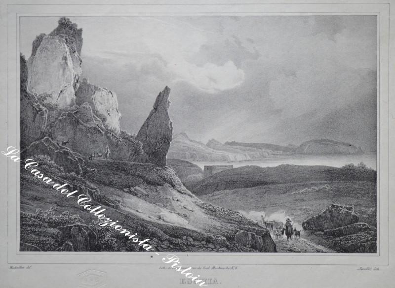 CAMPANIA – ISCHIA. “Eschia”. Michallon dis. Jacoltet lit., Engelmann, Parigi, 1823 circa.