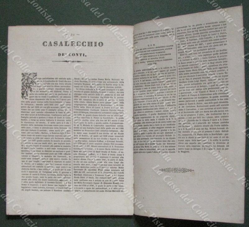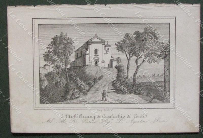 CASALECCHIO DE' CONTI, Bologna. Chiesa di S.Michele Arcangelo. Litografia di mm 225x155 ai margini, dis. da E.Corty. Unite pagine di testo descrittivo. Tratta dall'opera "Le Chiese Parrocchiali della diocesi di Bologna ritratte e descritte", edita nel 1837. (Rif.E5618)