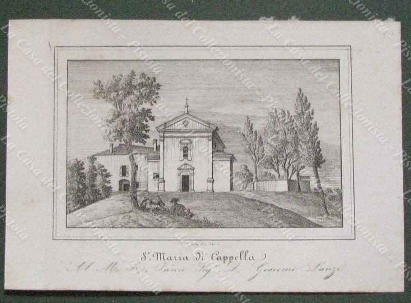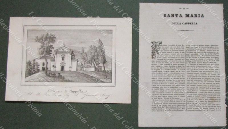 CASTEL S.PIETRO, Bologna. Chiesa di S.Maria di Cappella. Litografia di mm 225x155 ai margini, dis. da E.Corty. Unita pagina di testo descrittivo. Tratta dall'opera "Le Chiese Parrocchiali della diocesi di Bologna ritratte e descritte", edita nel 1837. (Rif.E5629)