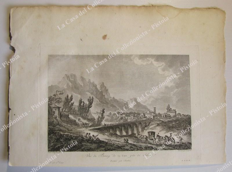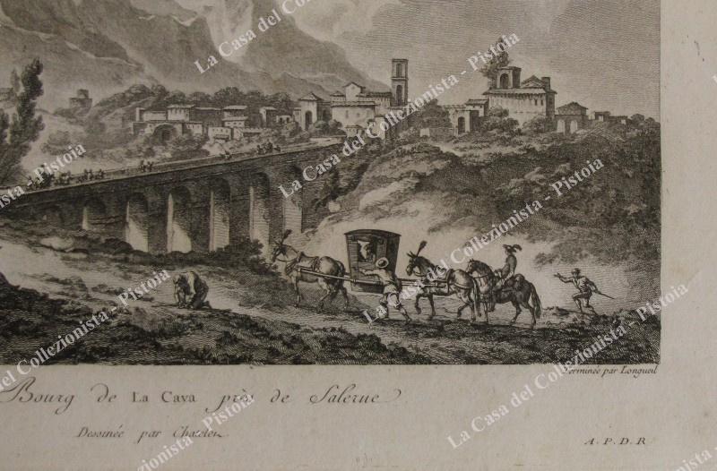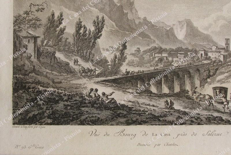 CAVA DEI TIRRENI, Salerno. Animata veduta generale della città. Da Saint Non, prima edizione 1781. Acquaforte di mm 227x152 (ai margini 340x 255). Buona conservazione, macchietta sul margine bianco superiore. (Rif.F0138)