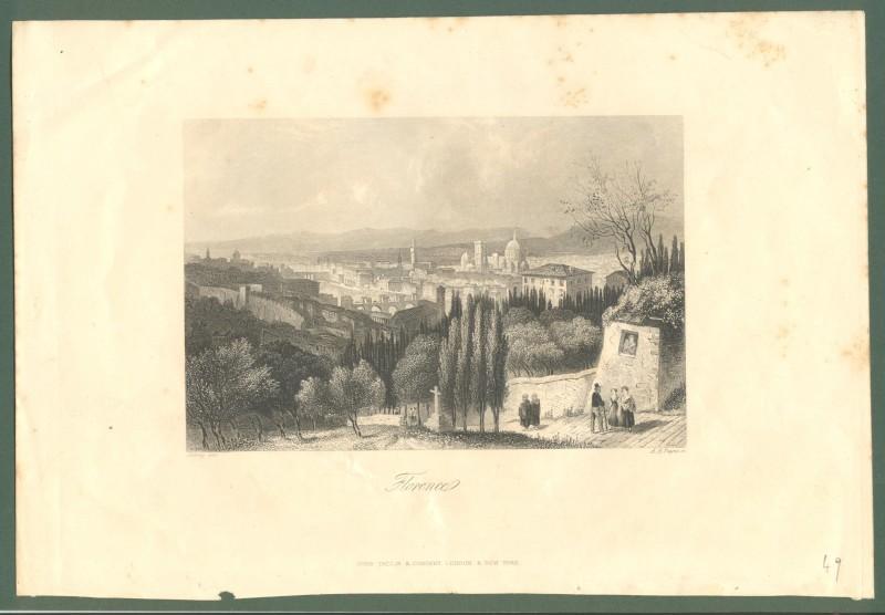 FIRENZE circa 1850. "FLORENCE". Bella veduta generale. Incisone di A. H. Payne, Londra circa 1850. Misura mm 156 x 105 più margini. Lievi ingiallimenti laterali. (Rif.D2168).