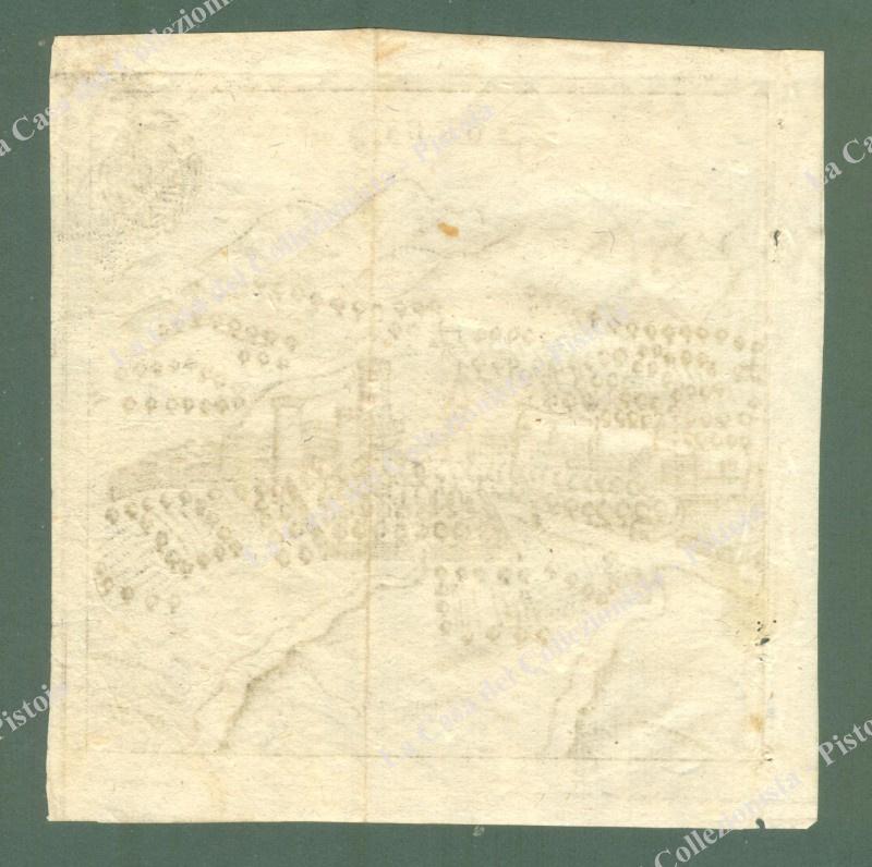FONDI. 1685. Veduta generale. Incisione all'acquaforte di mm 118x118 più margini. Tratta dall'opera di Francesco Scoto "Itinerario, overo nova descrittione de' viaggi principali d'Italia", edita in Venezia nel 1670 presso Gio. Pietro Brigonci nel 1685. Ripiegata (proviene da libro). Minimi forellini presso la cornice sinistra. (Rif.E2234)